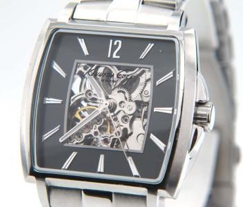 Kenneth Cole Stainless Steel Skeleton Watch.The total watch's weight is 142.7 grams.The measurements of the watch head is 33 x 36 mm and 11 mm in thick.chain is 19 mm wide.The length of watch: 8.75".Water Resistant