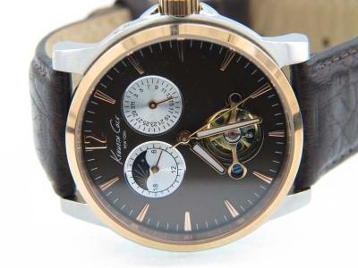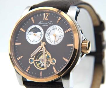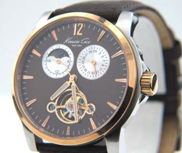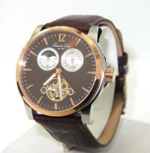 Kenneth Cole Stainless Steel Skeleton Chronograph Leather Strap Watch.The total watch's weight is 69.2 grams.The measurements of the watch head is 37 x 39 mm and 11 mm in thick.The length of watch: 9.5".Water Resistant