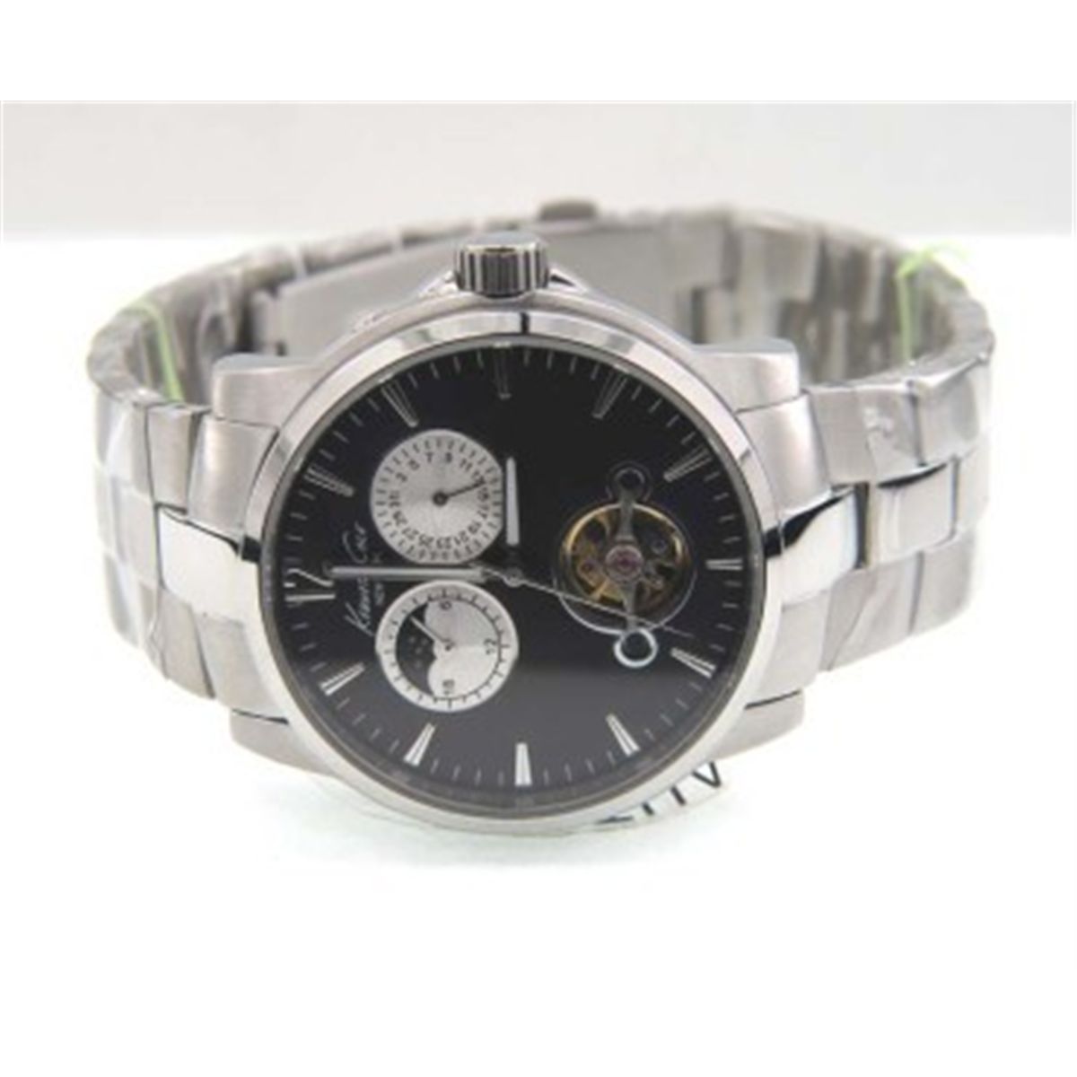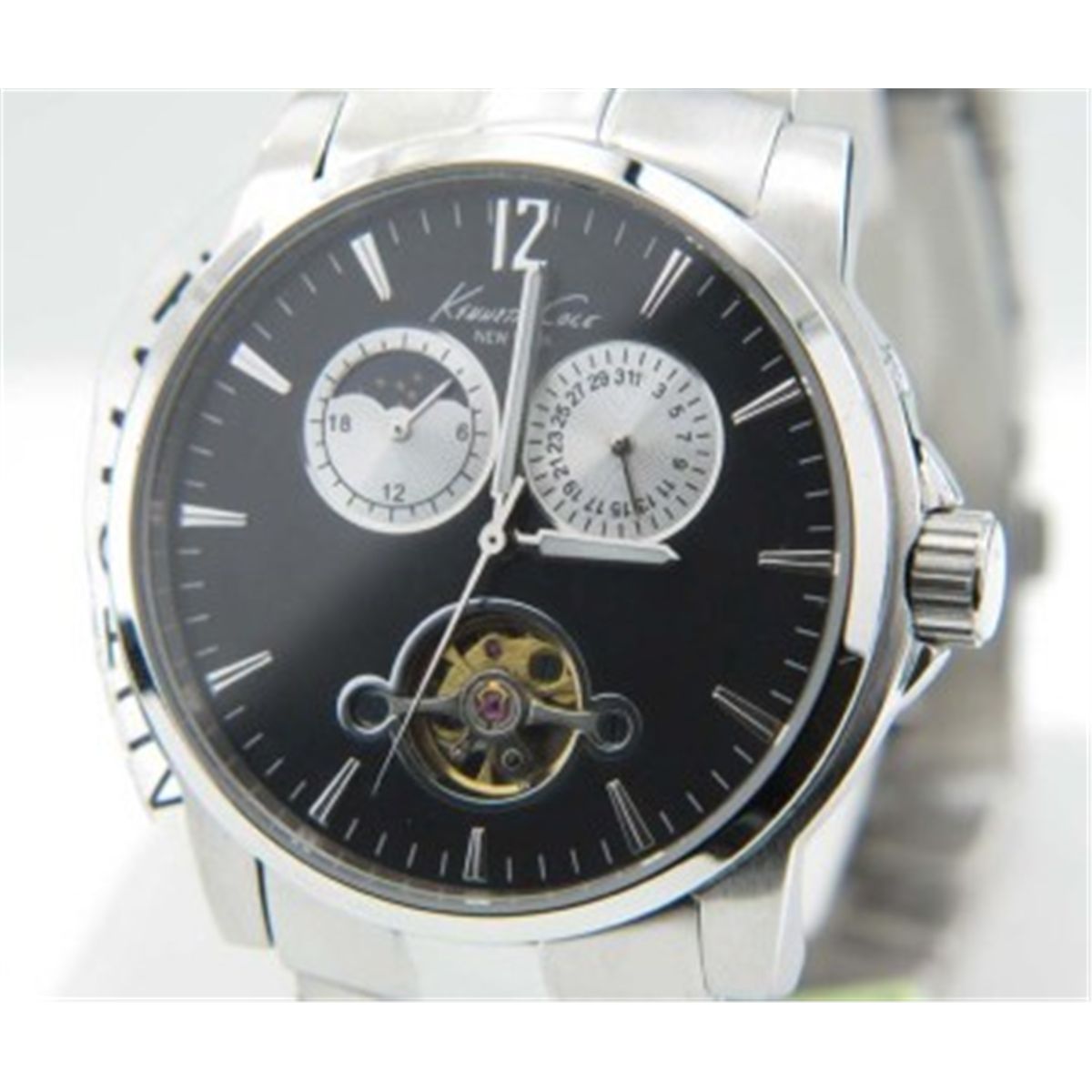 Kenneth Cole Stainless Steel Skeleton Watch.Kenneth Cole Stainless Steel Chronograph & Skeleton Watch.The total watch's weight is 149.8 grams.The measurements of the watch head is 37 x 39 mm and 11 mm in thick.chain is 19 mm wide.The length of watch: 8.5".Water Resistant
