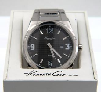 Kenneth Cole Stainless Steel, Watch.The total watch's weight is 170.1 grams.The measurements of the watch head is 43 x 42 mm and 10 mm in thick.chain is 22 mm wide.The length of watch: 10".Water Resistant