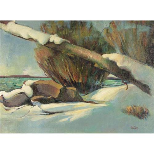 Canadian [1929-1998] LAKE WINNIPEG, WINTER; 1967 oil on canvas 22 x 30 in. (55.9 x 76.2 cm) signed & dated
