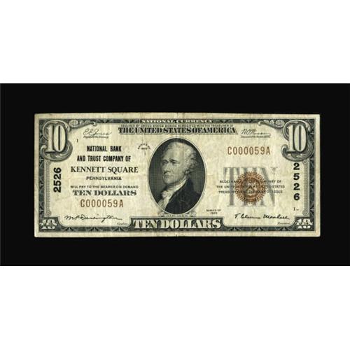 Kennett Square, PA - $10 1929 Ty. 1 NB & TC Ch.
