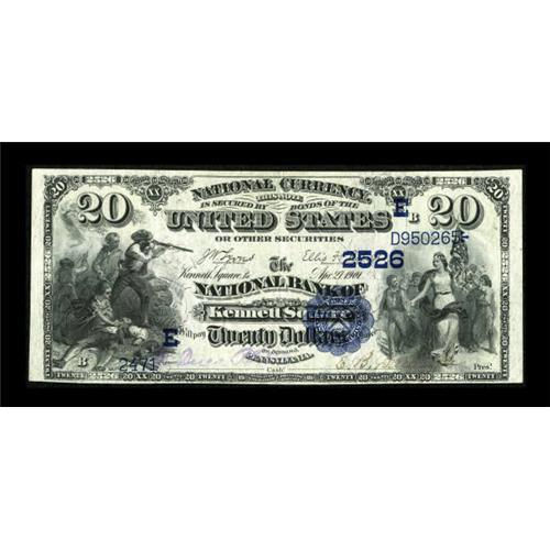 <B>Kennett Square, PA</B></I> - $20 1882 Date Back Fr. 555 <B>The NB of Kennett Square</B></I> Ch. # (E)2526<BR> An attractive piece which is one of only a handful of early examples available from this one bank Chester County location. Bright <B>Extremely Fine,</B></I> a winner of a note that has been off the market for the better part of three decades. <BR><BR><b>Shipping:</b> Coins & Currency (<a target="_blank" href="http://www.heritageauctions.com/common/shipping.php">view shipping information</a>)