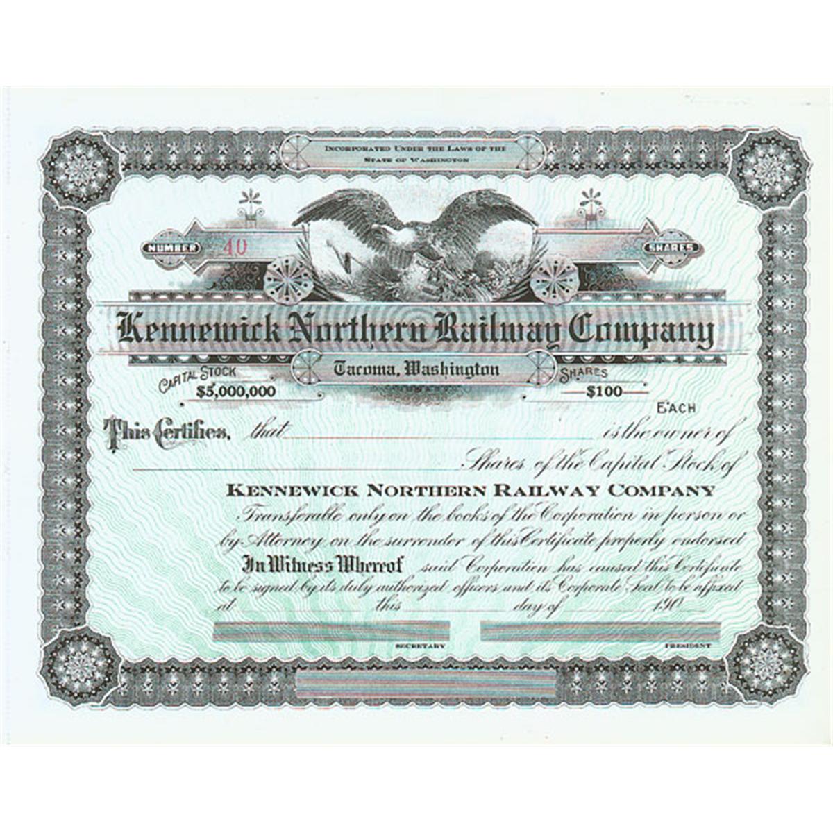 190-. Washington. Unissued stock certificate. Green/Black. Vignette of a spread eagle at top center. Litho. Uncancelled and Excellent.