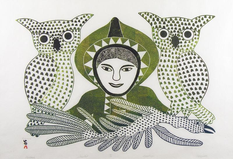 Canadian, Cape Dorset RCA [b. 1927] MY BIRDS; 1975 colour stonecut on paper; ed. #41/50 19 x 25 in. (48.3 x 63.5 cm) signed, titled, dated & editioned