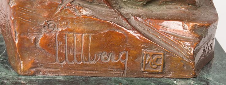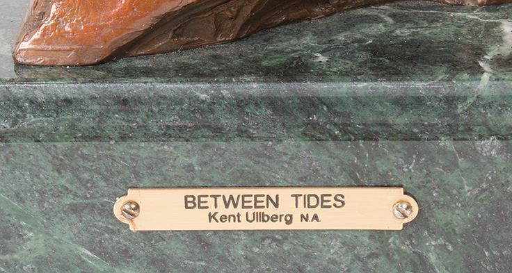 Kent Ullberg (1945 - ). Between Tides. 18" x 12" x 9" bronze with marble base. Inscribed: © Ullberg ACC 8/35.