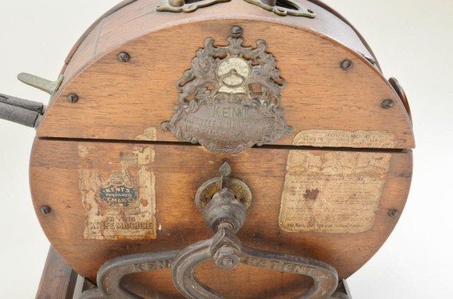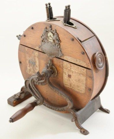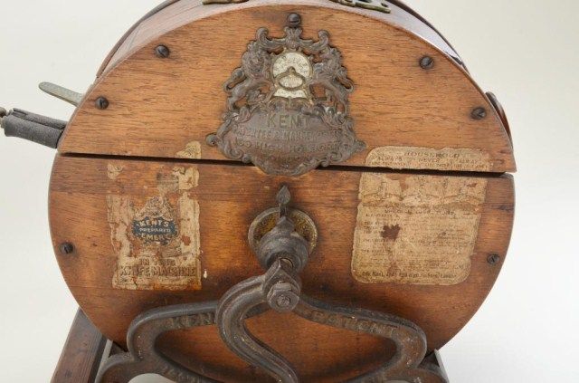 Kent knife sharpener, mid-19th century, fancy decoration and labels; very good condition; a great decorator. Est.: $100-$300.
