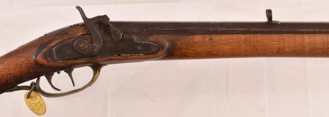 28" octagon barrel, double set triggers, brass tag on trigger guard reads "J.M. Davis Memorial 2063"