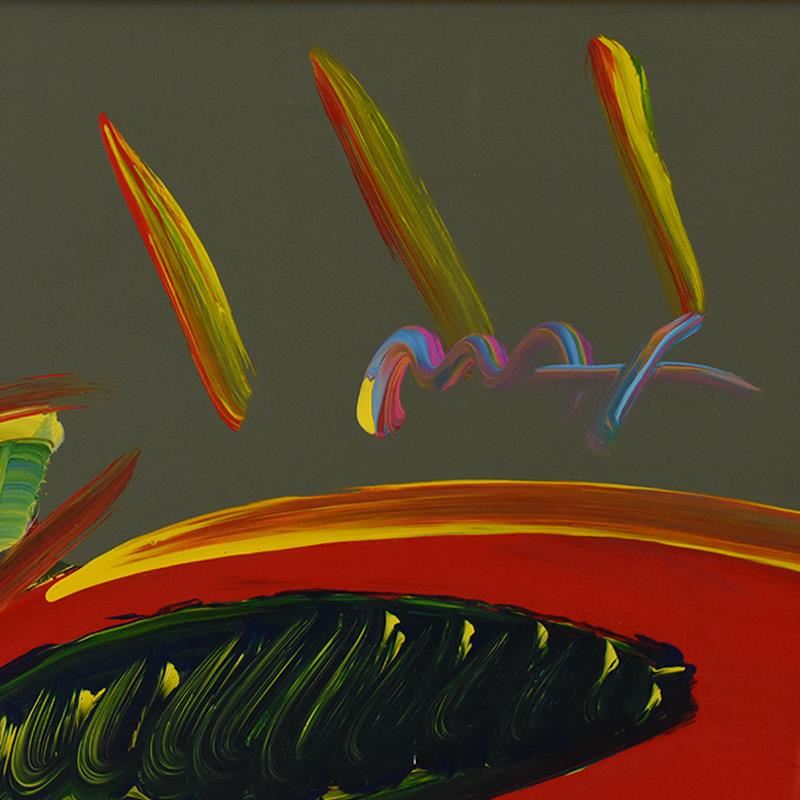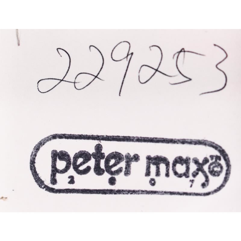 "Kentucky Oaks" is a one-of-a-kind acrylic mixed media on paper, hand signed by Peter Max. This piece comes custom framed and is certified of authentic with registration number inverso. Measures approx. 47" x 35" (frame), 35" x 23" (image).