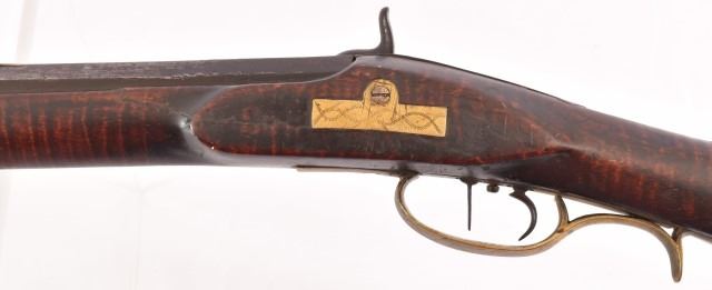 "D.M." engraved on the 41" octagon barrel. Double set triggers, full length stock, .31 cal.