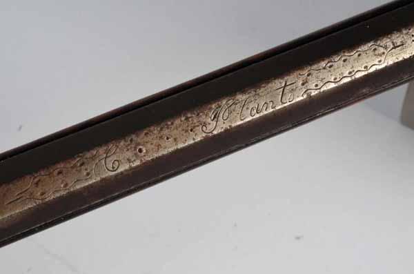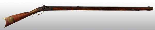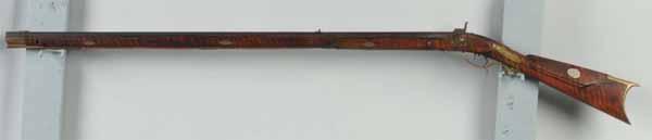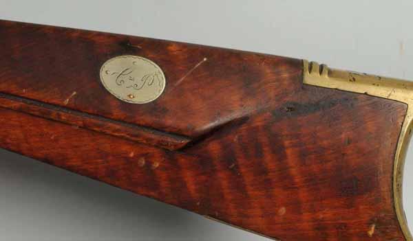 Description Circa 1840 to 1850. OL: 56 - 1/4". BL: 40". TB: Octagonal. LM: Percussion. Original. PB: Oval. S: Curly Maple. Eight silver inlays. This Kentucky is signed "C. Plants" and may be a western Pennsylvania rifle. The curly maple stock has a broken wrist which was repaired during its period of use and it carries a "squarish" engraved side opening patchbox. The stock has been cleaned but not refinished. Condition (Fair).