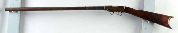 Description OL: 52". BL: 31". TB: Octagonal. S: Walnut. Single shot breach-loading rifle with no markings. Possibly a unique or one-of-a-kind rifle with its original surface. Condition (Very Good).