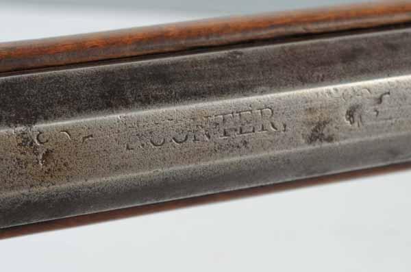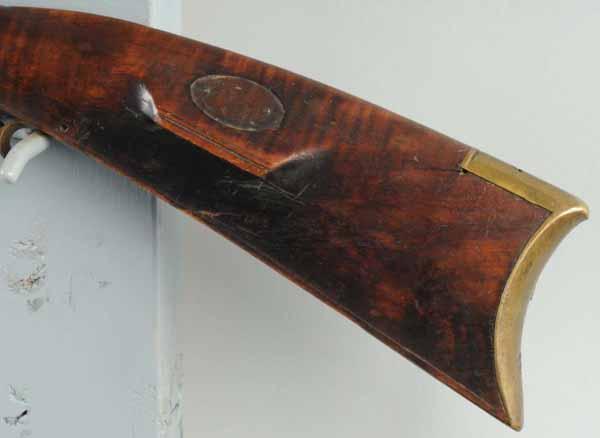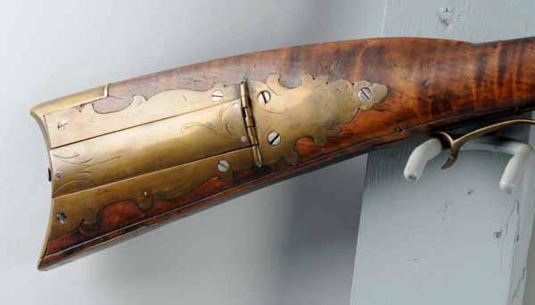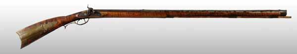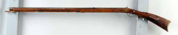 Description Circa 1830 to 1840. OL: 52 - 1/2". BL: 37 - 1/2". TB: Octagonal. LM: Percussion. PB: 4-piece. S: Curly Maple. This Kentucky rifle is signed "P. Gonter" and is an example of an "in-period" re-stock and is still in its original percussion state. The barrel tang has been lengthened to meet the comb of the buttstock. His patchbox design is easily recognizable. Condition (Good).