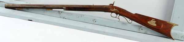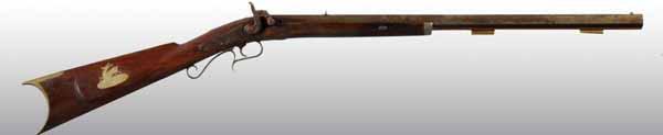 Description Circa 1840 to 1860. OL: 40". BL: 24 - 1/2". TB: Octagonal. This walnut half-stock Kentucky has two oval cheekpieces with a leaping stag in German silver inlaid on both sides. Condition (Good).