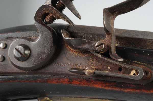Description Circa 1810 to 1815. OL: 61". BL: 45". TB: Octagonal. LM: Flintlock. Re-conversion. PB: 4-piece. S: Plain Maple. This Kentucky rifle is stamped "P. Gonter" and has a darkened, plain maple stock which appears to have no restoration, Dreppard lock is a re-conversion. The barrel and stock are full length and the barrel still has its original rifling and the patchbox is easily recognizable as Peter Gonter's Lancaster work. Condition (Good).