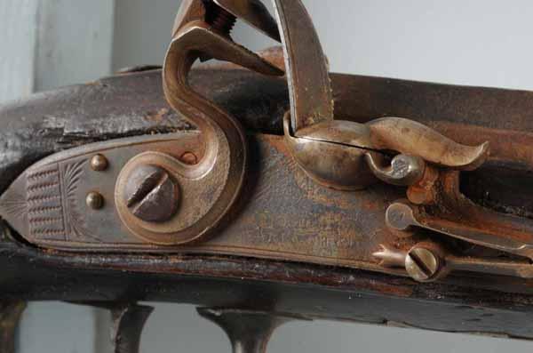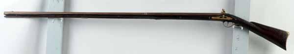 Description Circa 1815 to 1825. OL: 64 - 3/4". BL: 49 - 1/2". TB: Octagon to round. LM: Flintlock. Obvious re-conversion. S: Walnut. SR: Lengthened. One silver inlay. This Kentucky fowler signed "J. Doll" is a walnut stocked with the fore-end being restored approximately 37 inches from two inches behind the rear ramrod ferrule on out to the muzzle. The lock has been re-converted and the stock is darkened to match the new wood. Condition (Fair).