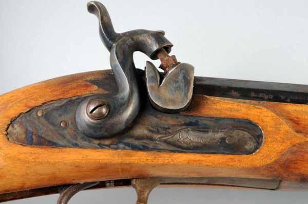 Description Circa 1950 to 1990. OL: 56 - 3/4". BL: 39 - 3/4". TB: Octagonal. LM: Percussion. Original. PB: Oval. This is a Dixie Gun Works Kentucky rifle stamped "Turner Kirkland Union City Tenn." and is a second half of the 20th century manufacturer. It may have "vintage value" however as it may have been one of his earlier pieces. Condition (Excellent).