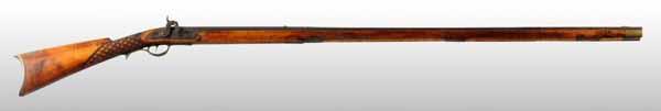 Description Circa 1830 to 1840. OL: 61". BL: 45 - 1/2". TB: Octagon to round. LM: Percussion. PB: None. S: Curly Maple. Incise carving. This signed Kentucky fowler is a classic example of M. Fordney's simple and later period work. The strong wrist "basket-weave" carving is the curly maple stock's only embellishment and other than a mid fore-arm break the gun is entirely original throughout and is still in its original percussion state. Condition (Very Good).