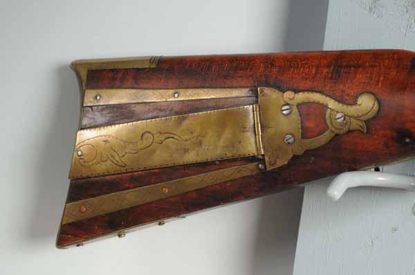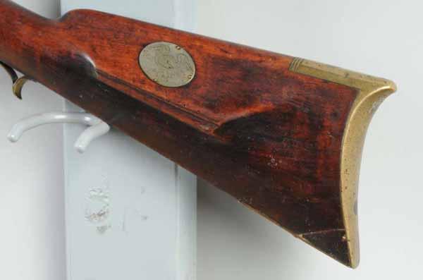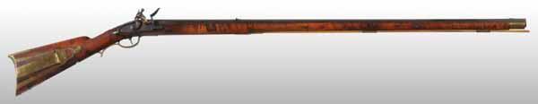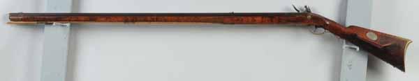 Description Circa 1830 to 1840. OL: 56 - 1/2". BL: 42". TB: Octagonal. LM: Flintlock. Obvious re-conversion. PB: 4-piece. Two silver inlays. This signed Kentucky rifle is by "W.M. Sheetz No. 52" has a percussion lock that is now corrected to flintlock and the curly maple stock has an old break in the center of the forestock, but is its original length. The fairly plain curly maple stock has been refinished and has a four-piece patchbox with a pierced finial. Condition (Good).