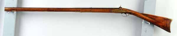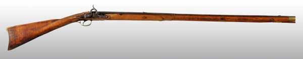 Description Circa 1810 to 1820. OL: 51". BL: 35". TB: Octagon to round. Original. PB: None. Relief carving. This Kentucky fowling piece can be attributed to George Schroyer. The engraving on the brass hardware indicated his shop work and the plain maple stock has a very graceful, slender, architecture. The gun was made originally as a flintlock but in now in percussion and the barrel and forestock have been shortened approximately eight to ten inches on the upper end. Condition (Good).