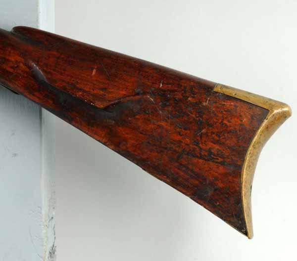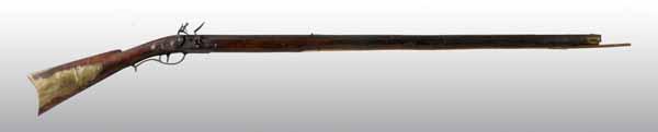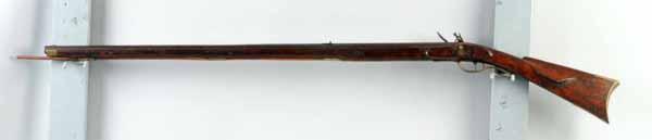 Description Circa 1830 to 1840. OL: 54 - 3/4". BL: 39 - 1/4". TB: Octagon to round. LM: Flintlock. Obvious re-conversion. PB: 4-piece. This Kentucky rifle bearing no signature has a plain maple stock, an untouched, old surface with a pleasing patchbox, and delicate engravings. This piece is another example of a "in-period" restocking with the lock being converted to flint. Condition (Good).
