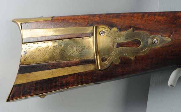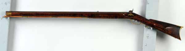 Description Circa 1835 to 1845. OL: 50 - 1/2". BL: 35 - 1/4". TB: Octagonal. LM: Percussion. Original. PB: 4-piece. S: Curly Maple. Incise carving. This later Kentucky Rifle is signed "John Keller, Carlisle PA" on the barrel with a "Kelker Bros., Harrisburg" back-action lock. His work is always recognizable even when it is occasionally unsigned. The overall condition of this rifle is excellent and it has a fine curly maple stock with no repairs. Condition (Very Good).