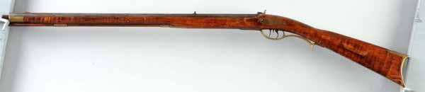Description Circa 1840 to 1850. OL: 39". BL: 24 - 1/4". TB: Octagonal. LM: Percussion. Original. S: Curly Maple. This plain curly maple stocked "boy's or ladie's" rifle is signed "G. Fay" and is quite a genuine rarity. It most likely is a small boy's rifle because it is "scaled down" in weight and dimension. Other than being cleaned and waxed it is a very fine example. The octagonal barrel still has its original rifling. Condition (Very Good).