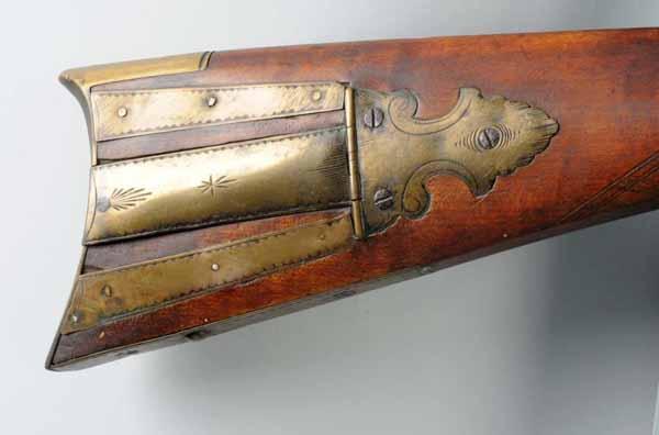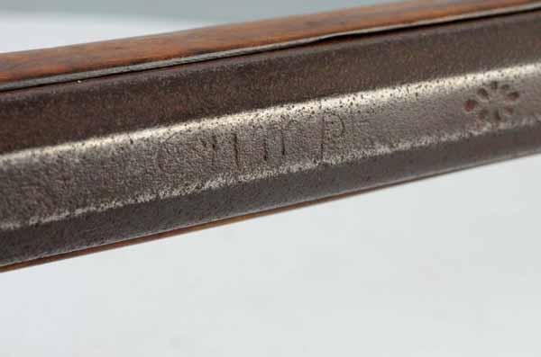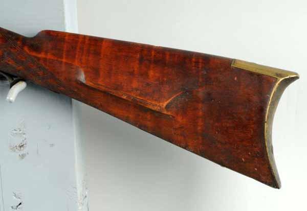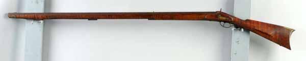 Description Circa 1830 to 1840. OL: 58 - 1/4". BL: 42 - 1/4". TB: Octagonal. LM: Percussion. PB: 4-piece. Incise carving. This Kentucky rifle is signed "Gumpf" and is in untouched, "as-found" condition with a deeply engraved patchbox and also a long toe-plate. The curly maple stock is fully complete and the rifle is in its original percussion state. Condition (Good).