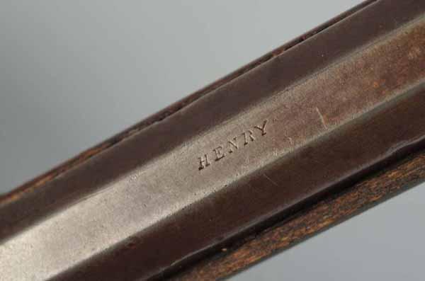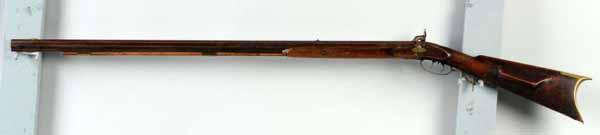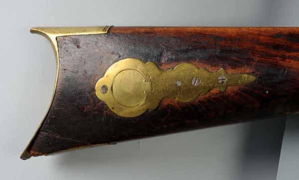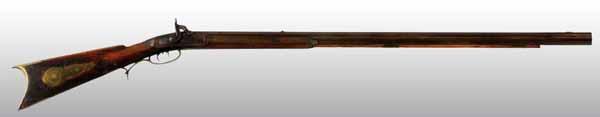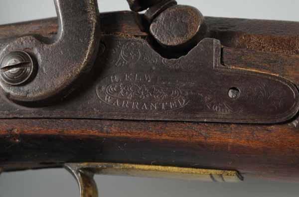Description Circa 1840 to 1850. OL: 53 - 1/4". BL: 37". TB: Octagonal. LM: Percussion. PB: Oval. S: Walnut. Three brass inlays. This later walnut half-stock is signed "Henry" and is in "as found" condition with a half-inch forestock silver running from the top of the lock to the missing nose-cap. There is also a half-inch piece missing from the toe-plate and the late circular-lidded patchbox has a nice scalloped surround. Condition (Fair).