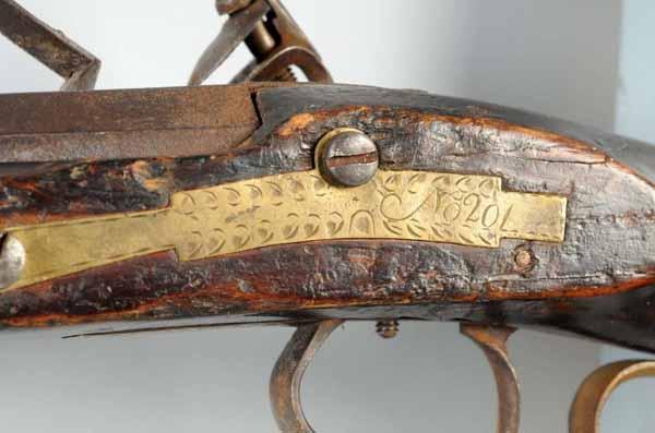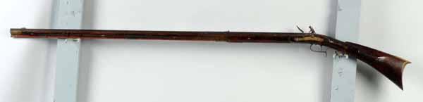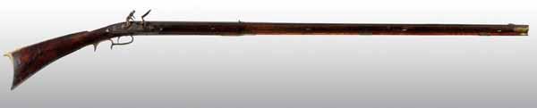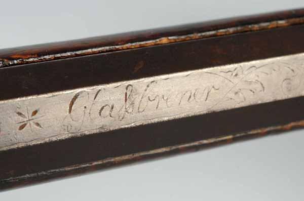 Description Circa 1825 to 1835. OL: 61". BL: 45 - 1/2". TB: Octagon to round. LM: Flintlock. Original. PB: None. This late rifle is signed "D. Glassbrener" and appears to be in its original flintlock configuration and is numbered #201 on the sideplate. The barrel shows rifling, probably straight, and has an old, dark finish, with a coat of modern shellac, and there are wrist repairs. Condition (Good).