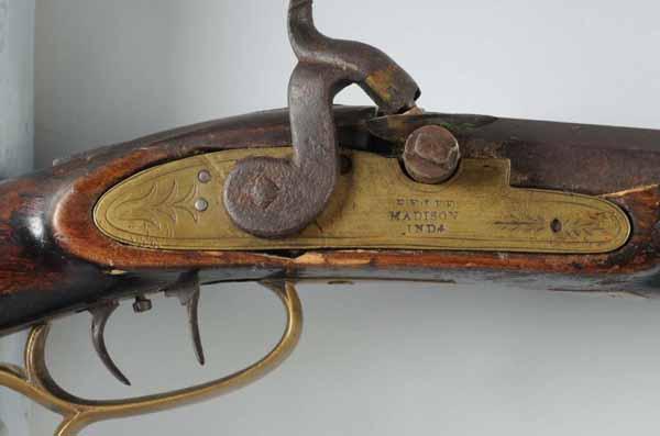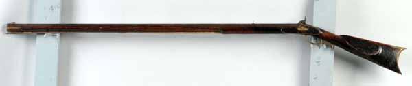Description Circa 1840 to 1860. OL: 60 - 3/4". BL: 44 - 3/4". TB: Octagonal. LM: Percussion. Original. PB: None. S: Curly Maple. SR: Patched. This rifle is signed "J. Cochran" with its original finish and brass lock marked "B. Fife Indiana". There is a piece of wood added above the rear of the lock and the barrel is slightly shortened on the front end. Condition (Good).
