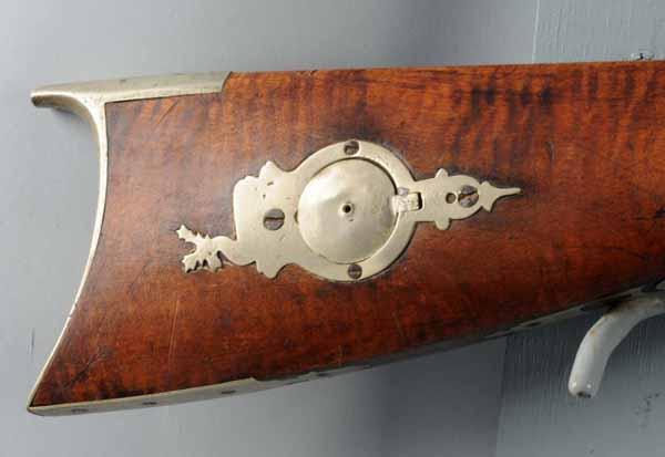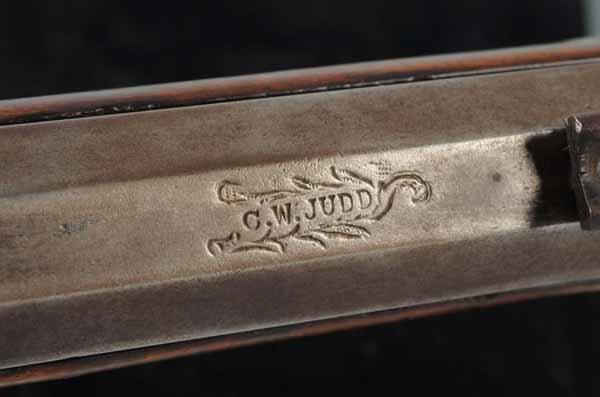 Description Circa 1840 to 1850. OL: 50". BL: 34 - 1/2". TB: Octagonal. LM: Percussion. PB: Oval. S: Curly Maple. This Kentucky rifle is stamped "C.W. Judd" and its curly maple stock has a nice "honey" color contrasting with all of its German silver mountings. The barrel and the lock have been cleaned. Condition (Good).