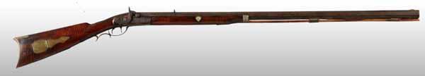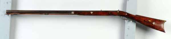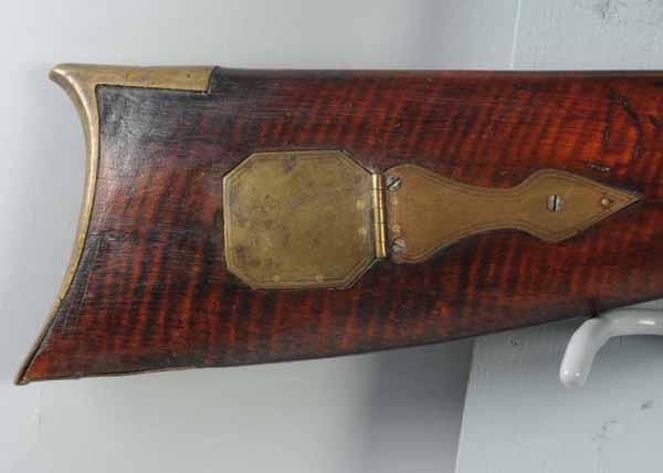 Description OL: 53 - 1/2". BL: 37 - 1/4". TB: Octagonal. LM: Percussion. PB: 2-piece. S: Curly Maple. One brass inlay and two silver inlays. This rifle is an original half-stock in the "plains rifle" style with barrel tang and lock issues. Condition (Good).