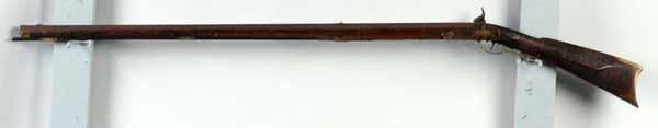Description OL: 56 - 1/4". BL: 42 - 1/2". TB: Octagonal. LM: Percussion. PB: 4-piece. S: Curly Maple. This is a later 19th century re-stock of an earlier gun. The barrel is pitted heavily from the one end to the other. Condition (Fair).