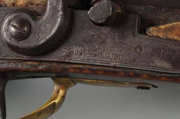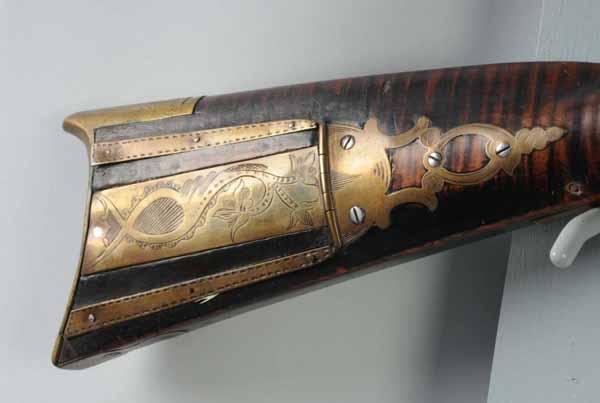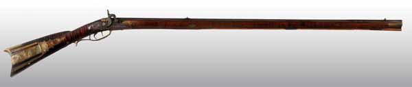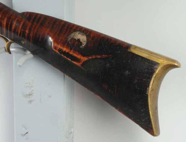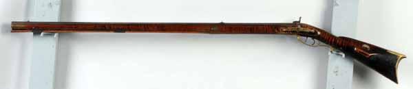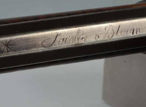 Description Circa 1830 to 1840. OL: 56". BL: 40 - 1/4". TB: Octagonal. LM: Percussion. PB: 4-piece. S: Curly Maple. Three silver inlays. This rifle is signed "J. Bloom" and has a pleasing, old, original finish with its original percussion state. The only damage is a break in the area of the lock and a longer barrel tang was added. Condition (Good).