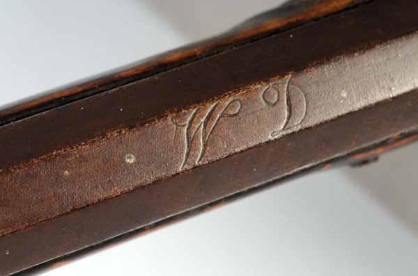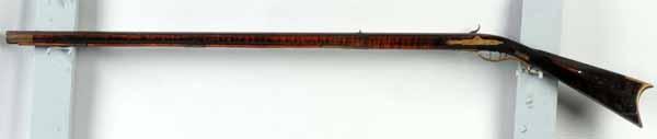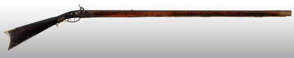 Description Circa 1840 to 1850. OL: 56". BL: 40 - 1/2". TB: Octagonal. LM: Percussion. PB: None. S: Curly Maple. This plain Kentucky signed in script "W.D." is a classic Bedford County rifle, probably by William Defibaugh. Other than old brass wrist repair, the gun has its original finish and is long, graceful, and has a classis, beautiful Bedford County hand-made lock. Condition (Very Good).