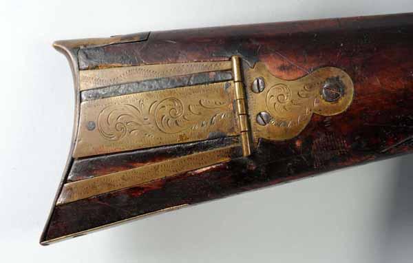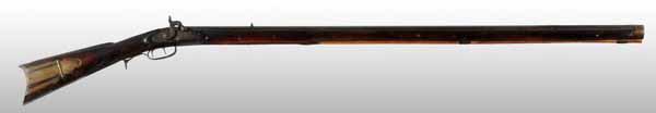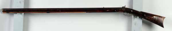 Description OL: 57 - 3/4". BL: 43". TB: Octagonal. LM: Percussion. PB: 4-piece. Incise carving. One silver inlay. This rifle is a late one made of plain "Dark varnished" maple and is too generic to place to an area. There are wood repairs. Condition (Good).