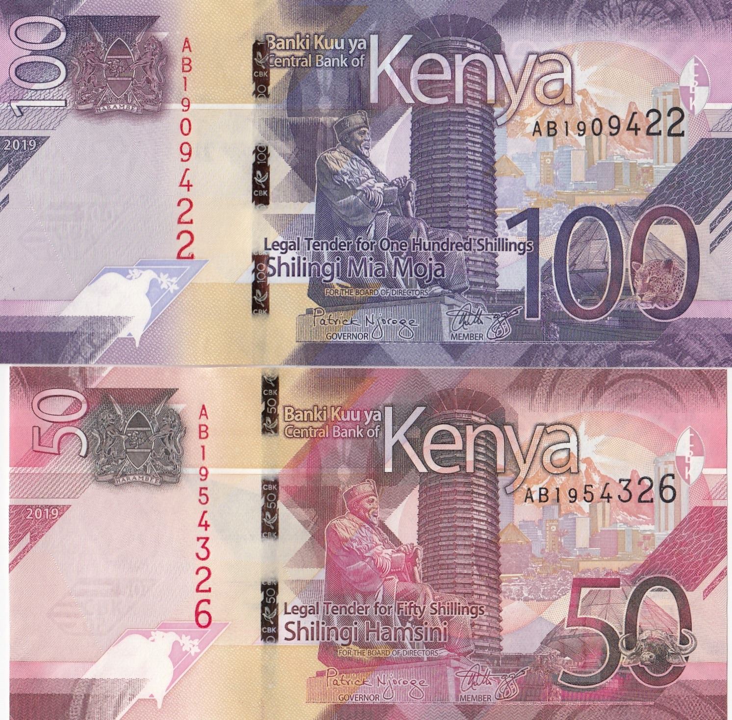 Kenya, 50 Shillings and 100 Shillings, 2019, UNC, pNew, (Total 2 banknotes)br/serial numbers: AB 195