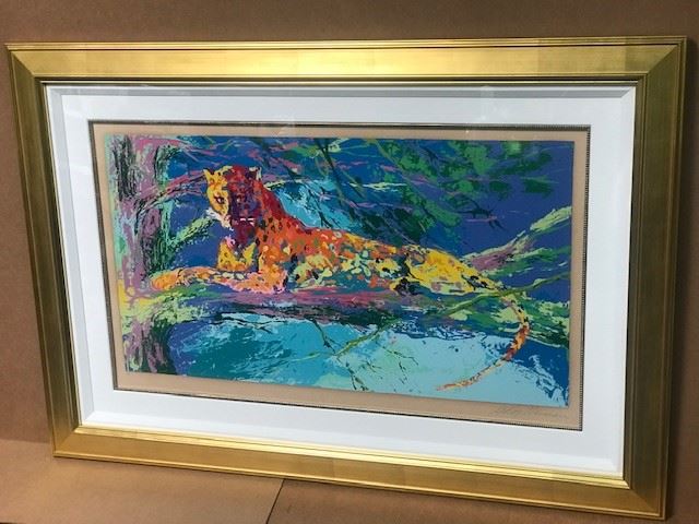 Kenya Leopard by LeRoy Neiman - Hand signed by LeRoy Neiman - Limited Edition Serigraph - Rare AP (Artist's Proof) - Framed size = 37" x 53"