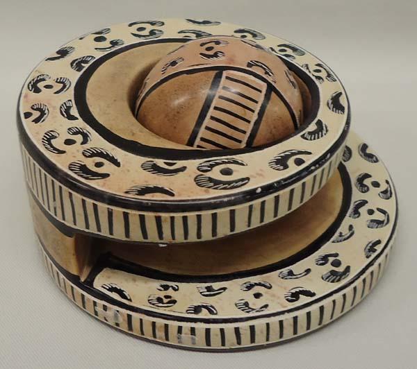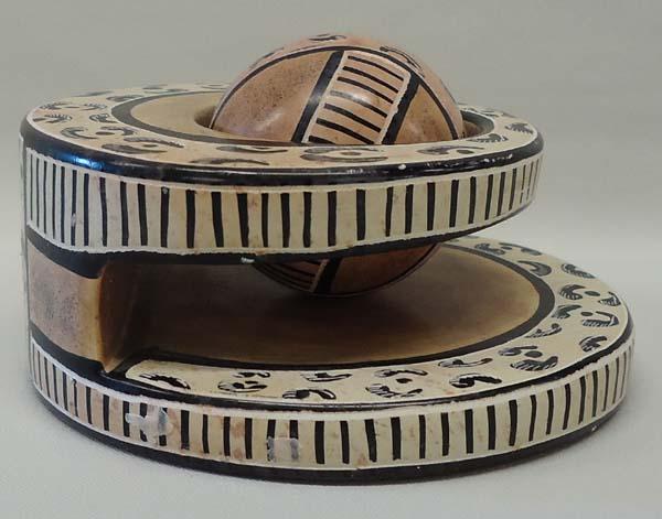 Kenyan Ceramic Paperweight. Bottom says ''Swahili Imports, Made in Kenya''. Measures approx. 2 1/3''H x 3 3/4'' circumference. SHI $25.