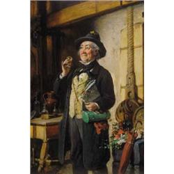 Kern Hermann (1838-1912): Borozgató<p>Olaj, fa, 48x31 cm, Jelezve jobbra lent: Kern H.