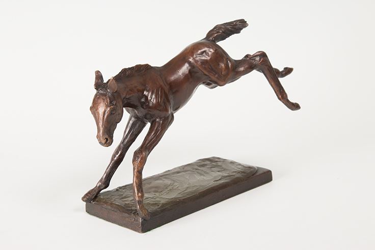 Kerry Millikin. Two-piece bronze. Spring Fever. Mare: 14" x 16" x 6". Foal: 7" x 9" x 3 ½". Both inscribed: Kerry Millikin, '09.