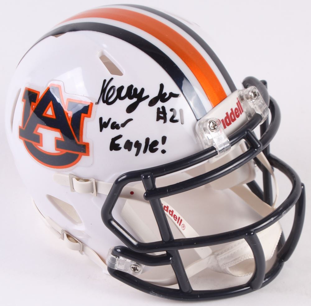 Riddell Auburn Tigers speed mini-helmet. Hand-signed and inscribed in black felt-tip pen by Kerryon Johnson.