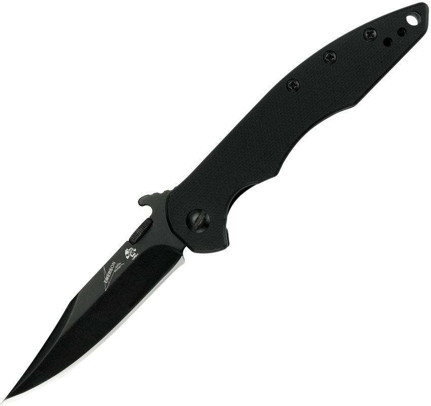 Closed: 4"; Blade: 3" l 8Cr14MoV Stainless l Standard Edge l Black Oxide Finish; Other Info: Lanyard Hole l Pocket Clip. Thumb disk. Wave shaped opening feature. Black G10 front handle and black oxide coated 410 stainless back handle