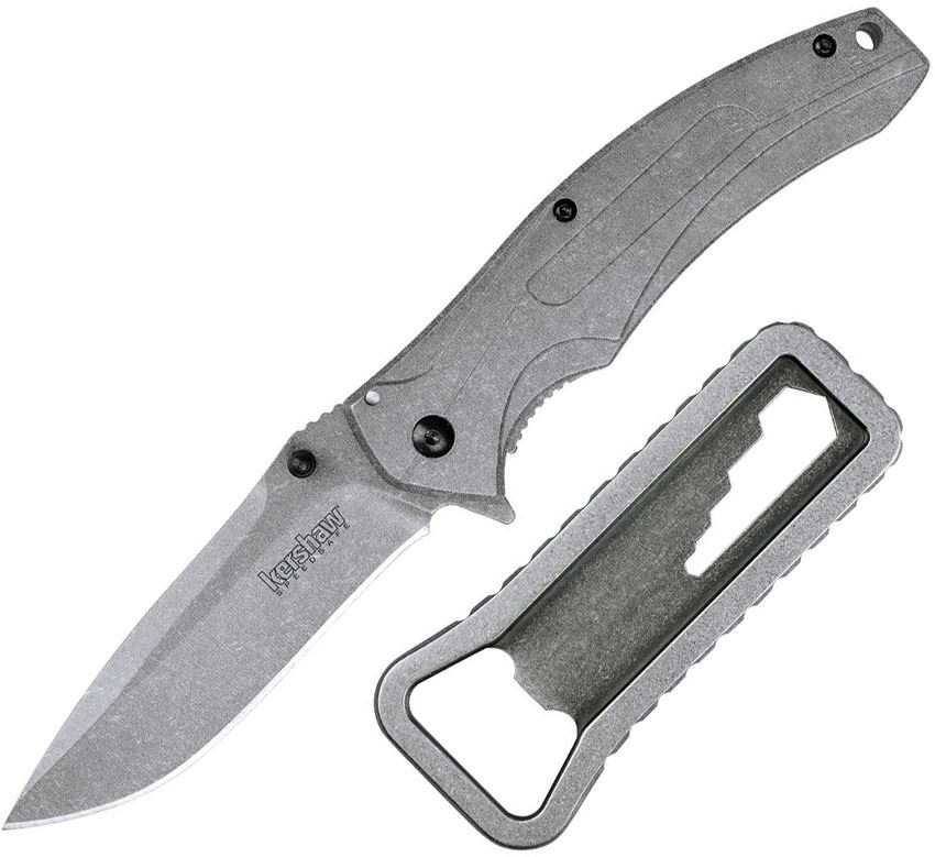 Closed: 4.75"; Blade: 3.75" l 8Cr13 Stainless l Standard Edge l Stonewash Finish; Other Info: Thumb Stud(s) l Extended Tang l Thumb Ridge l Lanyard Hole. Stonewash finish handle. Also includes 4.25" overall stonewash finish stainless multi-function tool with bottle opener and hex wrench.