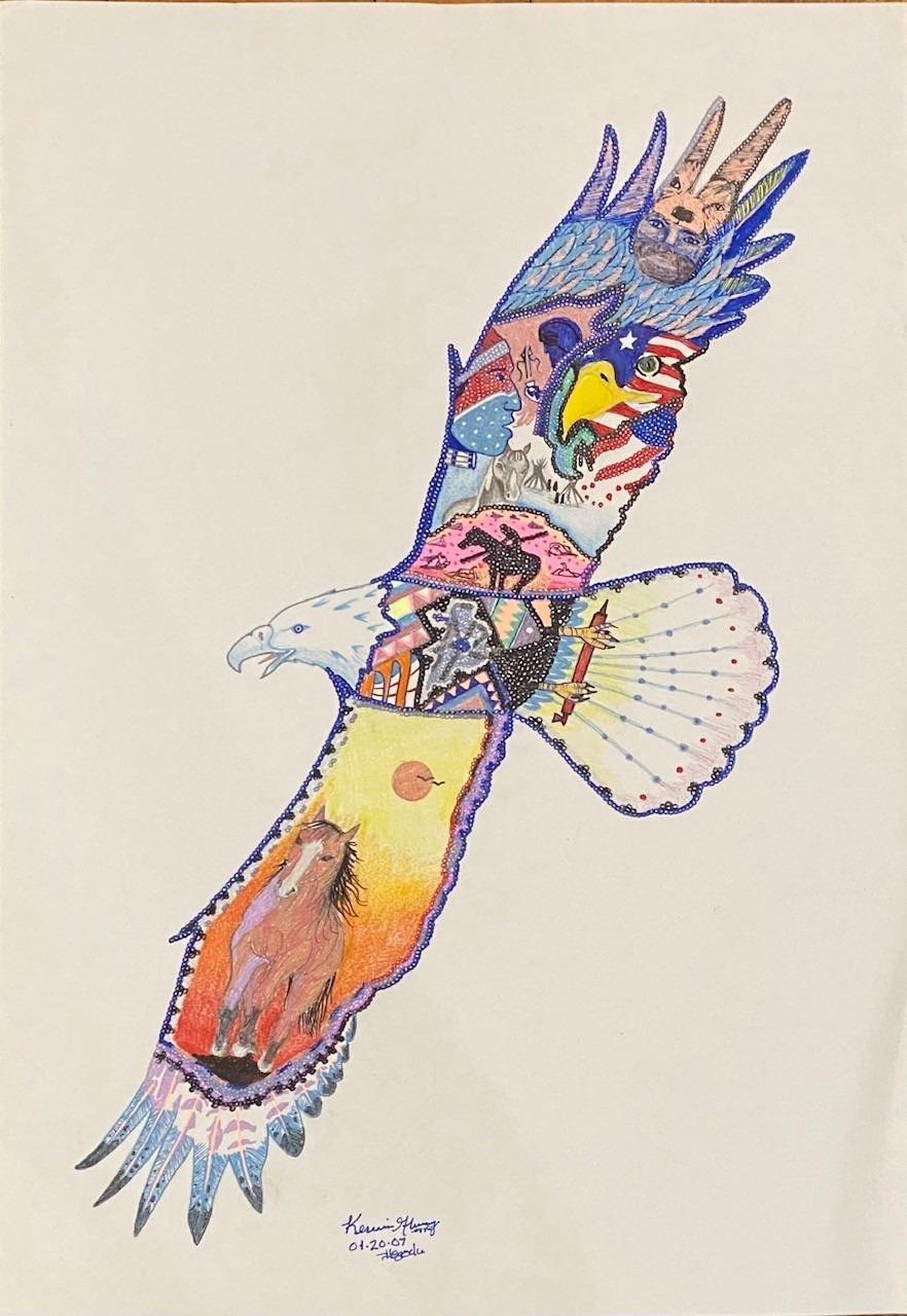 Unbelievable Pencil on Paper Eagle Drawing with so much more by Iowa of Oklahoma Artist Kerwin Murray. A Horse on the Wing, End of the Trail and Red, White and Blue Eagle Face and More. Open this up and enjoy an amazing piece of Artwork.