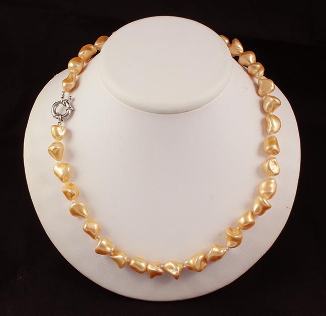 Keshi Yellow Peach Pearl Handmade Necklace **|**|** 223.50CARAT Keshi Pearl Necklace 16 Inches Long Shiny Yellowish Peach Handknotted with metal lock ; MSRP: $0