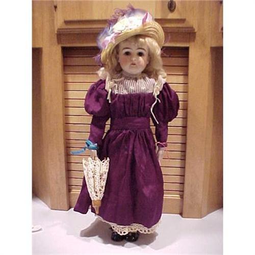 <table width="100%" border="0" cellspacing="0" cellpadding="4"><tr><td><em> Lovely delicate coloring that Kestner is known to do. Can't go wrong here!</em></td></tr><tr> <td width="100%"> I love this doll. She is so delicately painted. The head has no damage or repairs. She is marked #147. Her brown eyes sleep. The jointed riveted body is in good condition. The upper arms are wood covered with the kid. The lower arms are bisque and lovely. In removing the plaster pate to light her head, the plaster crumbled so she has a new pate. The wig is the original mohair one and in nice shape. All her clothing except her shoes are older and possibly original. Shoes are new. She books for 550 - 600 with more added for a riveted jointed body. My price is very reasonable for the quality of this doll. </td></tr><tr> <td> </td></tr><tr> <td>Reference #: 143_C</td></tr><tr><td>Condition:very good</td></tr><tr><td>Year:1892</td></tr><tr><td>Country:Germany</td></tr><tr><td>Maker:J. D. Kestner</td></tr><tr><td>Height:19</td></tr><tr><td>Title:Kestner # 147 on riveted body</td></tr><tr><td>Location:Sidney, Ohio 45365</td></tr></table>