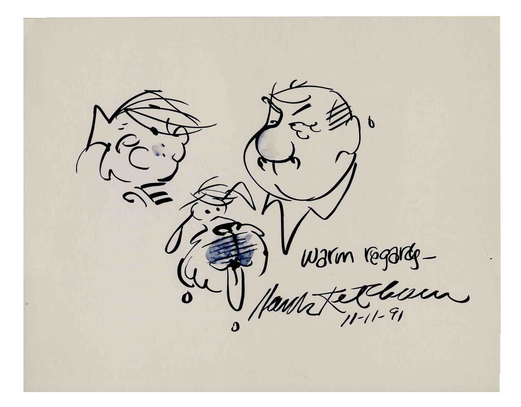 Hank Ketcham "Dennis the Menace" Sketch Signed -- in Black Fountain Pen on 10" x 8" Poster Board -- Fine Condition