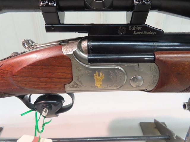 Kettner O/U HB BL=650mm 20 GA/ 8 x 57 IRS Scope Zeiss 2.5-10 x 52 with Suhler Speed Mount Rifle In As NEW CONDTION , Beautiful Engraving w Gold OverlayS#171396